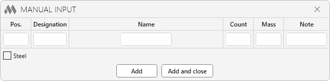– list contains three options for the specification item: Add from base – adding a position from the database to the specification Add subsection –adding a subsection description to the specification Manual input – adding a manually filled position.