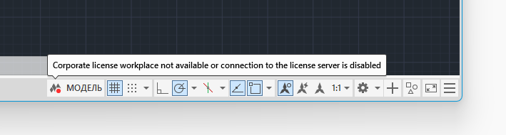 In AutoCAD, the indication is located in the Status Bar. If the license is received, the icon has a green dot and the corresponding tooltip is displayed when the cursor is hovered over it: