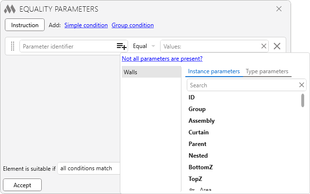 New conditional parameters have been added to the filter of elements by parameters, which is used in a large number of plugins: