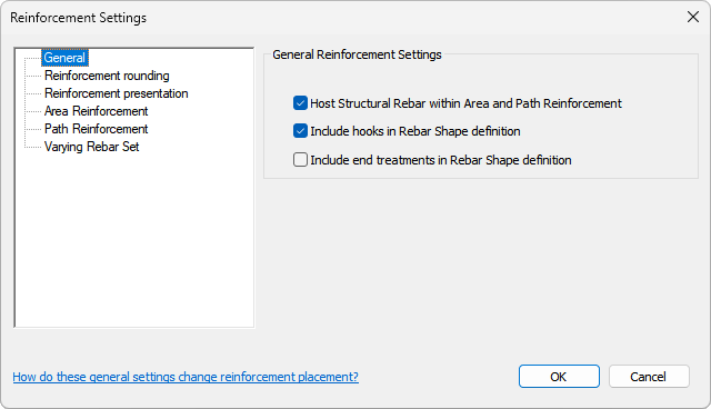 If the "Include hooks in Rebar Shape definition" option is enabled, only hook types with an angle suitable for the selected shape are included in the list of hooks.